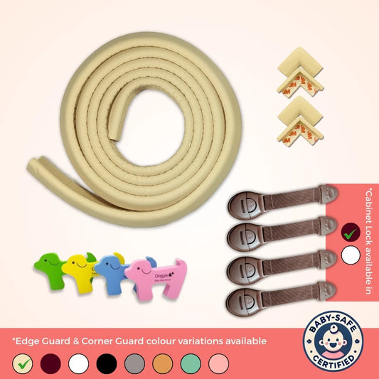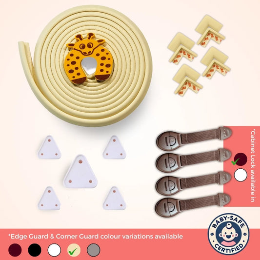 Starter Safety Combo for Household Hazards – Baby Proofing Kit with 19ft Edge Guard, Cabinet Locks, Socket Covers & Door Guards | Starter Safety Combo