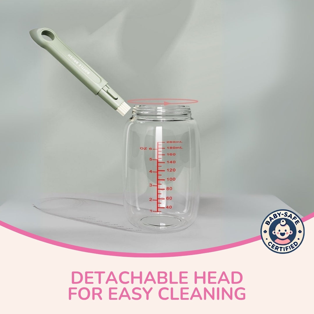 Perfect for baby bottles, sippy cups, milk storage containers, and other feeding accessories, this set makes cleaning quick, gentle, and thorough.