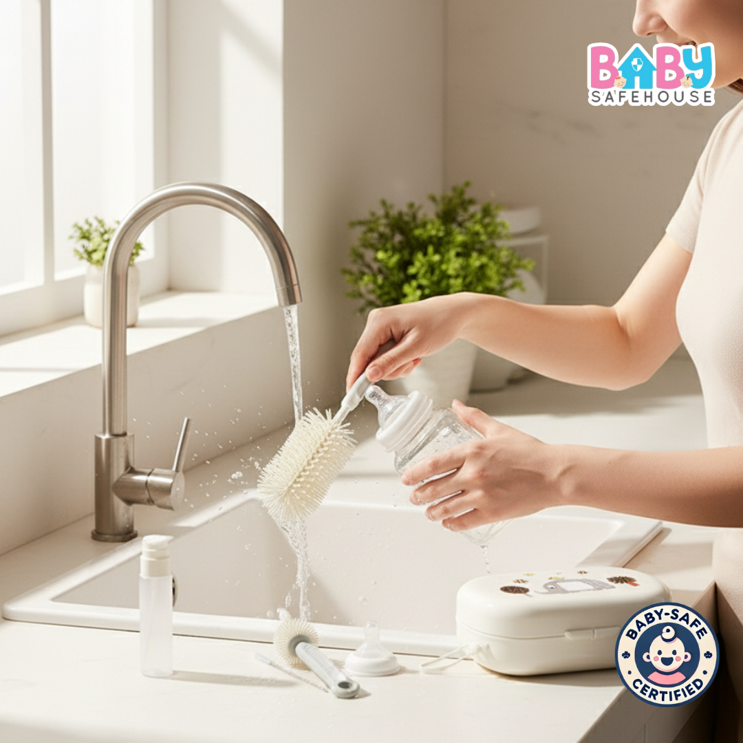 The BabySafeHouse Silicone Bottle Cleaning Brush Set is designed to make cleaning baby bottles, nipples, and straws safe, efficient, and hygienic.