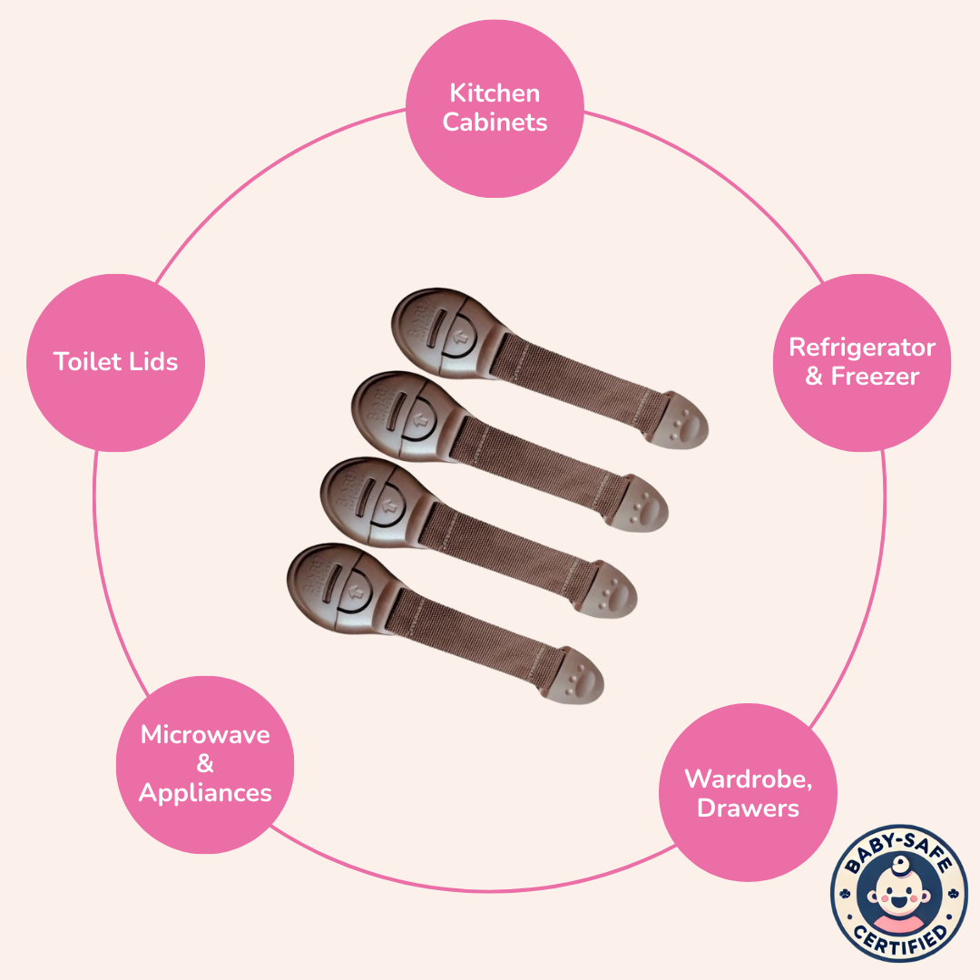 Multifunction Baby Safety Cabinet Lock - Pack of 10 - Brown