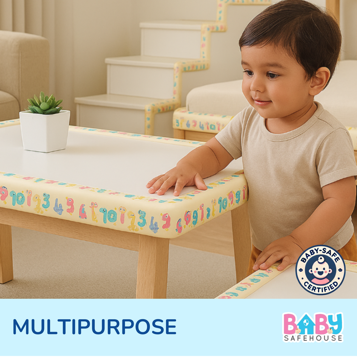 Designed for modern Indian homes, this baby edge protector prevents injuries from sharp furniture edges while adding a playful printed touch available in Bear Print and Number Print designs.