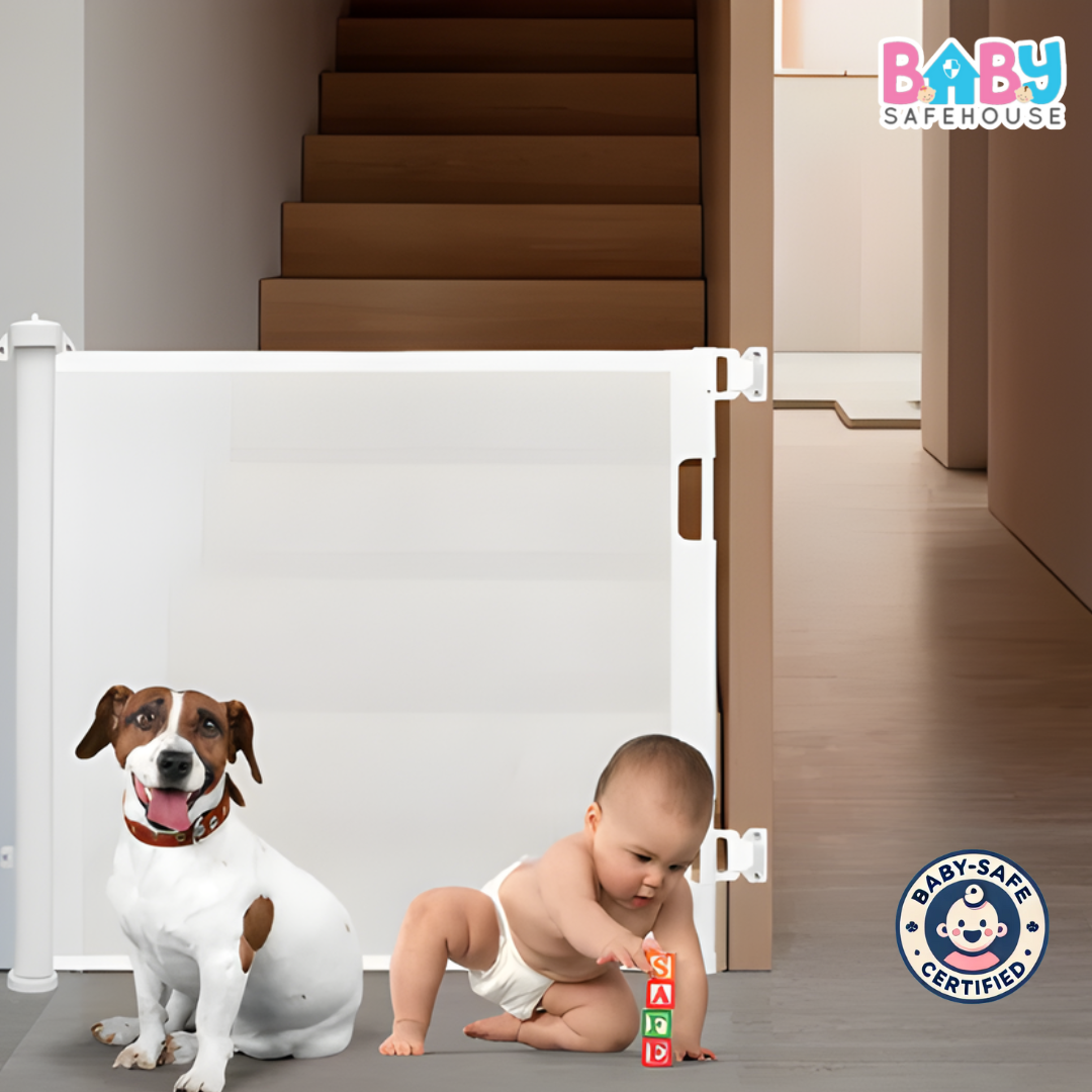 Keep your baby and pets safe with the BabySafeHouse Retractable Safety Gate, the best baby safety gate trusted by parents across India. Designed for stairways, hallways, and doorways, this retractable child safety gate offers maximum security while maintaining convenience and style.