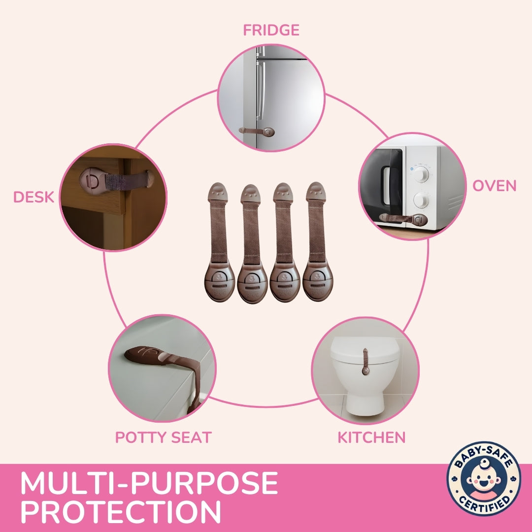 4 Cabinet Safety Locks with 3M Adhesive (Brown)